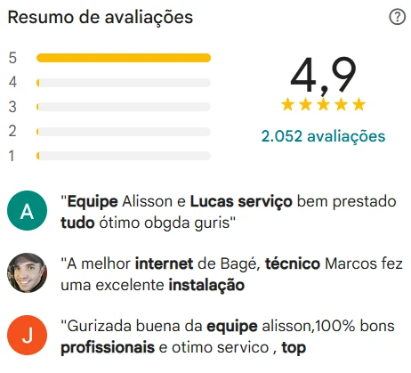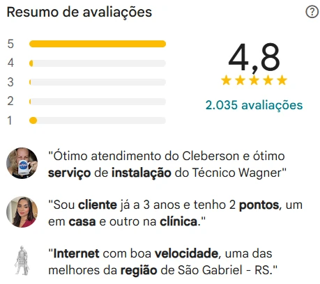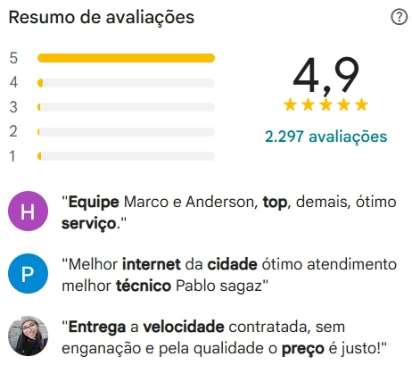 Alto índice de satisfação de clientes em sites como Google.com, MelhorPlano.net entre outros
