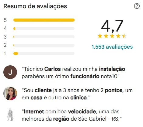 Sinta-se a vontade para compartilhar a sua opinião sobre os nossos serviços. Nosso objetivo é fornecer um serviço de referência, contamos com você!